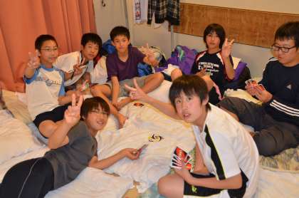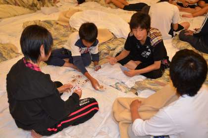 今夜は、入浴終了(20:50)から就寝(22:00)まで比較的余裕がありました。各部屋ではカードゲームなどをして最後の夜を楽しんでいました。