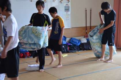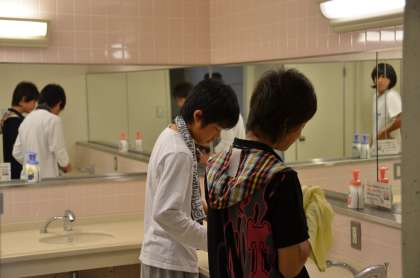 6:00起床 顔を洗い、部屋や荷物の片付けをしています。