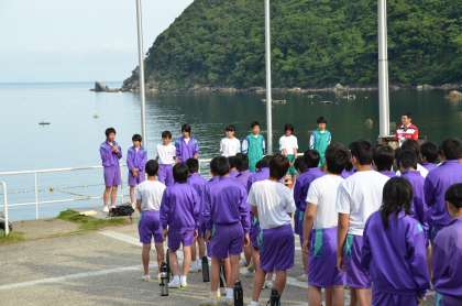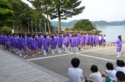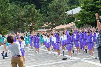 3日目の朝のつどいでは、旗係のスピーチの後、「COSMOS」を合唱しました。昨日同様ラジオ体操もしました。