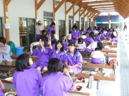 自然教室「命に感謝9」 公開日 2011/06/15 更新日 2011/06/15 行事の様子 ていねいに鯛をさばき、ゆっくり昼食をとったため、予定より遅れていますが、昼食終了です。ブルーパーク阿納とお別れです。