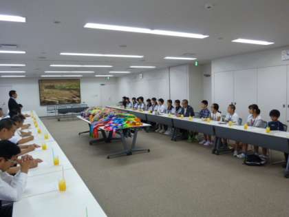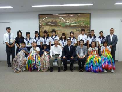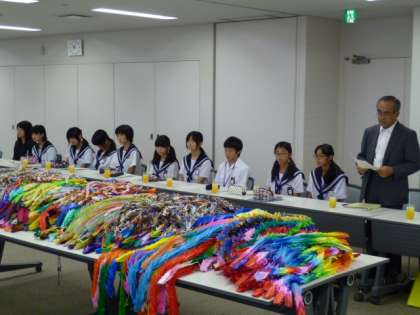 本日(8月2日)10時から市役所において「岩倉市小中学生平和祈念派遣に伴う折鶴預託式」が行われました。
