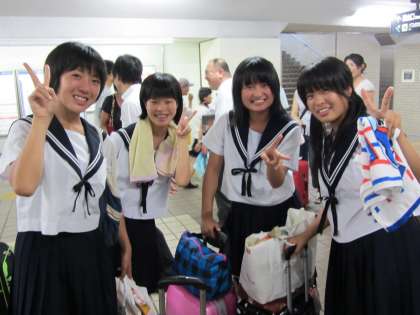 広島平和派遣団 帰着しました 公開日 2011/08/06 更新日 2011/08/06 南中 JUST NOW ! 8月6日夕刻「岩倉市小中学生平和祈念派遣団」が全日程を無事に終え、全員元気に帰ってきました。 定番の「広島焼き」はおいしかったようです。今年の広島派遣は特別な空気があったと思います。これを貴重な体験としてください。報告会を楽しみにしています。 本校から参加した久保田さん、佐野さん、田中さん、富田さん、お疲れ様でした。