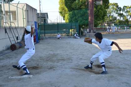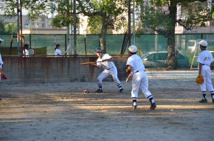 今日の部活動「野球部」 公開日 2011/09/07 更新日 2011/09/07 部活動 新チームには、左ピッチャーが2人います。有効な戦力ですね。 野手は、バント練習やミートバッティングをしていました。