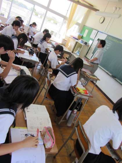 今日の授業「3年4組 理科」 公開日 2011/09/13 更新日 2011/09/13 授業の様子 9月13日(火)1時間目の授業です。 「電流が流れる水溶液」の授業です。実験を終えて、電流が流れる仕組みをまとめようとしていました。