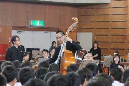 午後からは、セントラル愛知交響楽団の演奏会でした 公開日 2012/06/03 更新日 2012/06/03 行事の様子 カルチャー講座の午後は、芸術鑑賞の時間です。今年は、セントラル愛知交響楽団の演奏会です。聞き覚えのある曲もたくさんあり、充実した時間がすごせました。指揮者コーナーでは各学年ずつの生徒が参加し、オーケストラ相手に指揮をしました。
