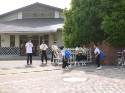 テストが近いということで夜遅くまで勉強をしているのでしょうか。眠そうな表情の子がいます。また、ちょっぴり不機嫌そうな子も・・・。しかし、ほとんどの子は穏やかな表情をしており、生活委員のあいさつに笑顔で気持ちよく応えています。