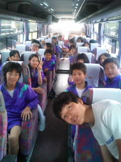 サービスエリア出発 公開日 2013/05/18 更新日 2013/05/18 南中 JUST NOW ! トイレ休憩も終わり、そろそろ出発します。バス内ではどのクラスもレクリエーションを楽しんでいるようです。