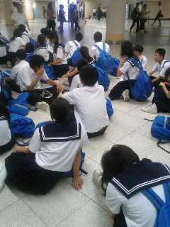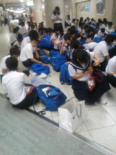 学級別の行動を終えて、各クラスが東京駅に集まってきました。3日間予定していたスケジュールはすべて消化することができました。あとは新幹線に乗って帰るだけです。さすがに疲れた様子です