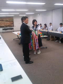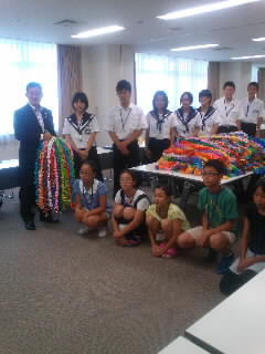 8月5日から市内の小中学生14名が広島に派遣され、平和記念式典に参加します。その折に献納する千羽鶴が派遣団に託されました。46665羽の鶴は市民や市内の児童生徒が心を込めて折りました。平和を願う一人一人の思いを派遣団のメンバーはしっかり伝えてくれることでしょう。