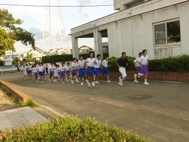 駅伝大会に向けての練習が始まりました。今年は管内駅伝大会が10月12日(土)、西尾張駅伝大会がその1週間後の19日(土)に開催される予定です。今日も部活終了後の時間帯に、練習参加を志願した生徒が汗を流していました。参加人数は160名ほど。これは全校生徒数の3分の1以上です。参加した目的は人それぞれだと思いますが、大会に向けての連帯意識をとても嬉しく思います。長い距離を走るのはつらいかもしれませんが、やりきった後の爽快感は何ともいえないものです。途中であきらめず、力の限りどんどん攻めてほしいと思います。南中職員はそんな子どもたちを温かい目で見守っています。
