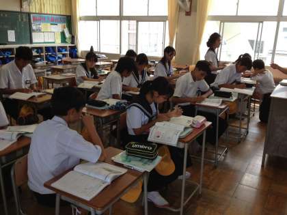 少人数指導による数学の授業風景です。自然発生的に仲間と学び合う姿が見られます。一方は教える側であり、他方は教えられる側ですが、両者にメリットがあります。教える側は人に説明したり、一緒に考えてあげたりすることで、自分の理解がより深くなるのです。こうした互恵的関係が学力を高めます。