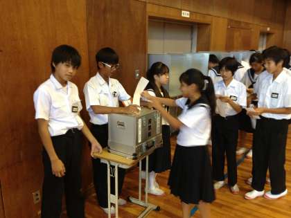 後期生徒会役員選挙 公開日 2013/09/27 更新日 2013/09/27 生徒会 6時間目に、後期生徒会役員選挙がありました。8名の立候補者の立ち会い演説の後、投票を行いなました。どの立候補者の演説内容も、南中をよりよくしたいという願いが感じられました。誰が当選したとしても、生徒会を盛り上げ、学校に貢献してくれることでしょう。なお、投票台、投票箱は、岩倉市選挙管理委員会から借りた本物です。一番最初の投票者が投票箱の中が空であることを確認してから投票するところも、実際の選挙通りです。