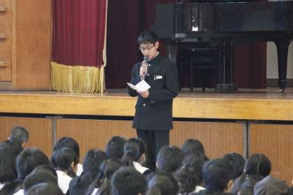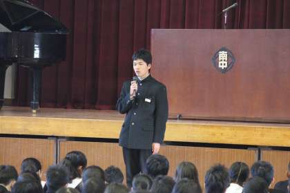 今日の修了式で平成25年度も締めくくり。一年間、学校内外で南中生の活躍が見られ、うれしく思います。校長式辞の後、1年、2年の代表が今年度の総括と次年度への決意を発表しました。平成26年度も、すてきな南中生の姿が見られることを楽しみにしています。
