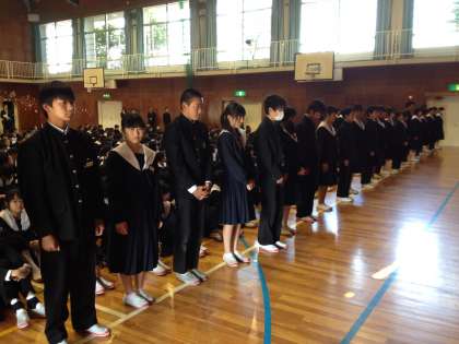 学級代表・議員・書記・班長任命式 公開日 2014/04/14 更新日 2014/04/14 南中 JUST NOW ! 今年度前期の学級代表・議員・書記・班長が任命されました。学級の中核となる活躍を期待しています。