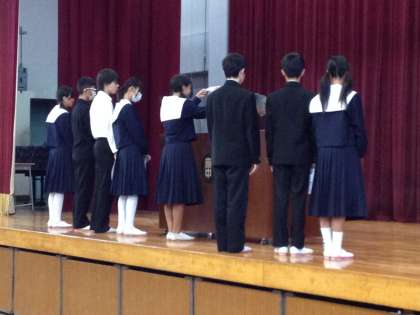 朝礼で各委員会の委員長が任命されました。活動の中心となって活躍してくれることを期待しています。