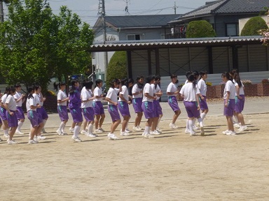実にさわやかないい天気です。緑が美しい季節になりました。運動場では3年生の女子が体育の授業を受けています。準備運動としてのランニングが始まりました。元気な声に足もそろい、見ていてとてもいい気持ちになりました。学習内容は陸上競技のようです。低い姿勢からスタートラインを鋭く飛び出し、短距離を走っています。好天の下、いい汗を流して技量を高めてほしいと思います。より速く・・・