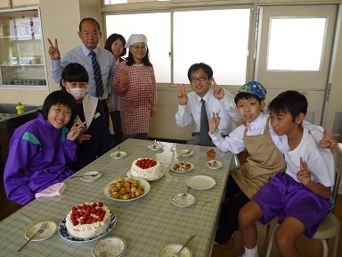 午前中、6・7組の子どもたちが調理実習を行い、2名の生徒が代表して、たこ焼きとイチゴケーキを職員室にも持ってきてくれました。自分たちの思いをきちんと述べ、手渡ししてくれた「作品」はとてもいい出来栄えで、おいしくいただきました。感謝、感謝です。