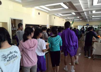 待ちに待った夕食です。たくさん食べて、次の活動に備えます。