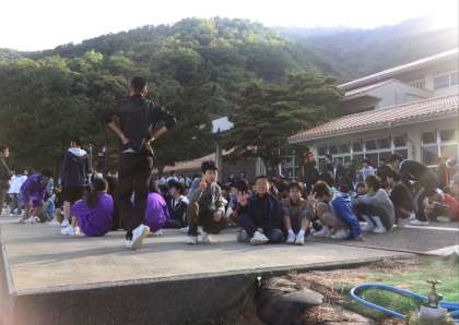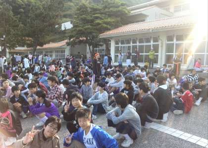 朝のつどい 公開日 2014/05/11 更新日 2014/05/11 南中 JUST NOW ! 今日もいい天気です。今のところ波は穏やかで、昨日中止になったカッターも実施できそうです。 これから犬山南部中とともに、朝のつどいを行います。