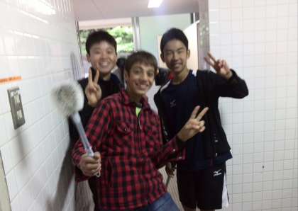 男子はさぼっているわけではありません。一瞬ポーズつくっただけです。誤解のないように。