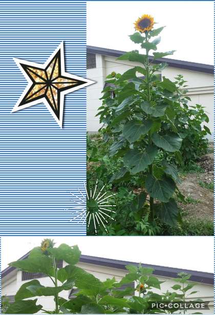 校地の片隅のひまわり、咲き始めました。 高さ3メートル近くになっていると思われます。