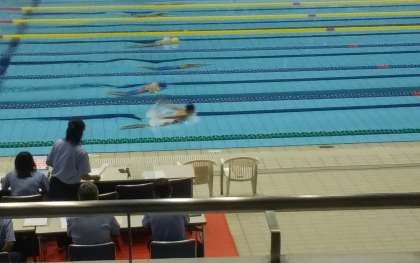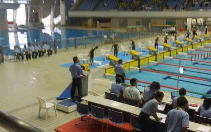 日本ガイシアリーナで水泳競技の県大会が行われています。1年生の大池さんが、400メートル個人メドレーに出場しました。