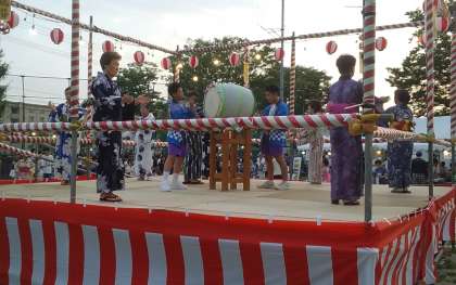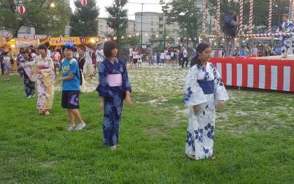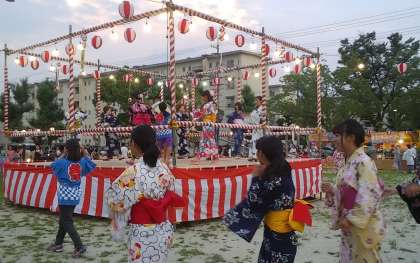 盆踊りが始まりました。 南中のボランティアがリードして、盛り上がっています