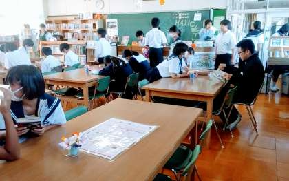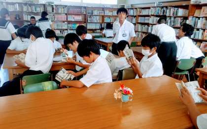 昼の休み時間、図書館にたくさんの人が集まってきています。
