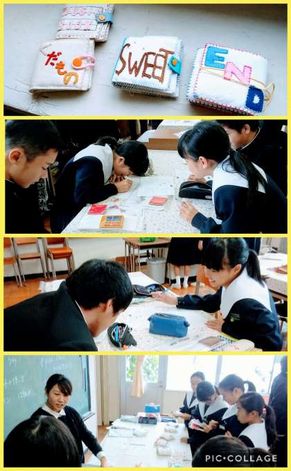 授業風景 2年生 家庭科 公開日 2017/10/25 更新日 2017/10/25 2年生 2年生 家庭科の授業風景です。 手芸の授業が始まりました。 フェルトでかわいい絵本を作ります。生徒の気持ちも盛り上がっています。