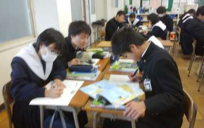 授業風景 2年生 社会科 公開日 2017/11/16 更新日 2017/11/16 授業の様子 2年生 社会科の授業風景です。 中部地方の地形について、地図などの資料をもとに、グループで話し合っています。