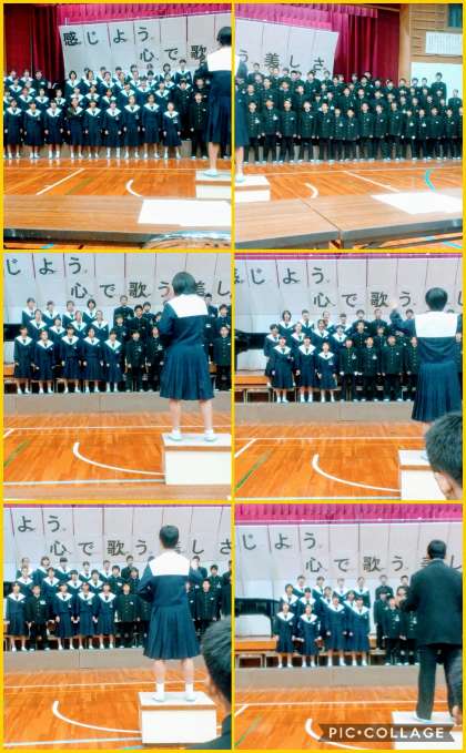 合唱コンクール 速報 公開日 2017/11/17 更新日 2017/11/17 行事の様子 1年生の様子です。 中学生としての自覚が感じられるたくましい歌声でした。 審査結果:金賞 4組 「キミのもとへ」 銀賞 1組 「生きている証」 銀賞 2組 「明日へ」 銀賞 3組 「いつまでも」 学年合唱:「COSMOS」