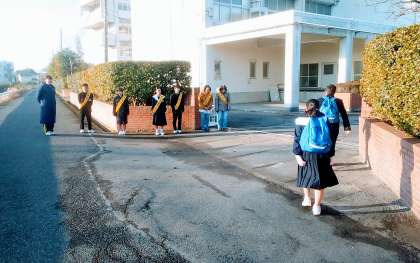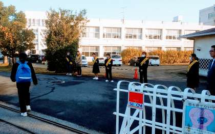 PTA朝のあいさつ運動 1日目 公開日 2017/11/27 更新日 2017/11/27 PTAより 2学期の期末テストが始まります。 定期テスト当日の朝は、PTA連携委員会の皆さんが校門でのあいさつ運動に取り組んで下さいます。 今日も6名の保護者の方にご協力いただき、テストの朝を爽やかにスタートさせることができました。