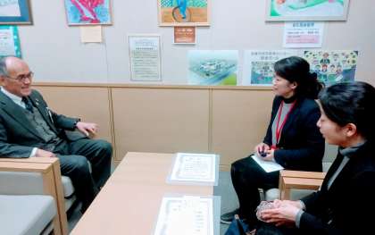 昨日市役所の教育長室で、長屋教育長から表彰状が手渡されました。(共に入賞された、東小の村田先生にも表彰状が渡されました。)