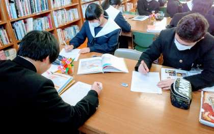 授業風景 3年生 社会 公開日 2018/02/06 更新日 2018/02/06 授業の様子 3年生 社会科の授業風景です。 国際関係について各自がテーマを設定し、図書館の資料を使って意見をまとめています。