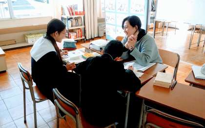 日本語・ポルトガル語適応指導教室 公開日 2018/02/07 更新日 2018/02/07 南中校長室の窓 日本語指導・・・国語 品詞の分類についての学習です、 ポルトガル語指導・・・辞書も参考にしながらポルトガル語を練習しています。