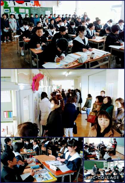 児童生徒交流会の後、1年生の授業風景を6年生の人たちや保護者の皆さんに参観してもらいました。中学校らしい授業を見せられたでしょうか?参考になっていれば幸いです。