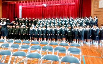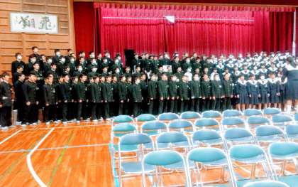 卒業生を送る会に向けて 公開日 2018/02/28 更新日 2018/02/28 2年生 明日はいよいよ「卒業生を送る会」です。 1・2年生が体育館に集まって、合唱練習に取り組みました。 思いが伝えられるよう、心を込めて練習しました。