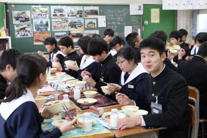 3年生にとっては、義務教育最後の給食です。 大好きなセレクト給食を、しっかり味わいました。