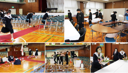 2年生が中心になって、卒業式会場等の最終準備を行いました。 心のこもった卒業式にしたいと思います。