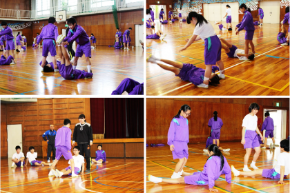 2年生 保健体育の授業風景です。 雨のため、予定を変更して「体幹トレーニング」に取り組みました。