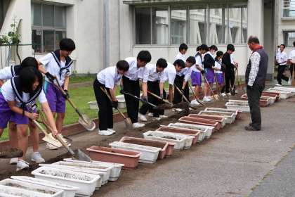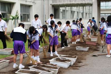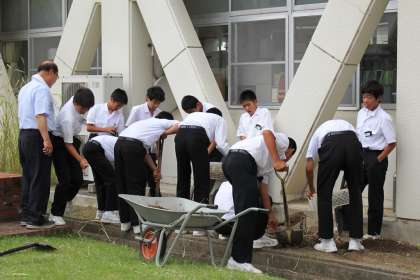 江原先生や栗木先生の指導を受けながら、環境を整える活動に取り組む人たちがいます。