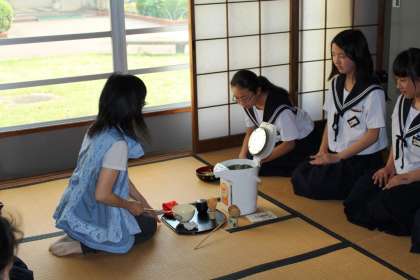 心を落ち着けて・・・茶花部 公開日 2018/05/17 更新日 2018/05/17 部活動 茶花部の活動風景です。 今日はいつもの教室ではなく、礼法室の畳に正座をして、本格的な練習です。 いつも以上に心を落ち着けて臨みました。