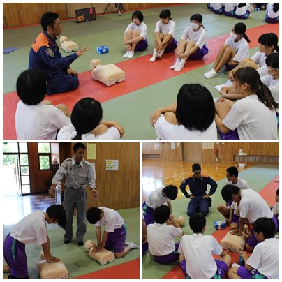 保健体育の授業の一環として、2年生は普通救急救命の講習を受けています。