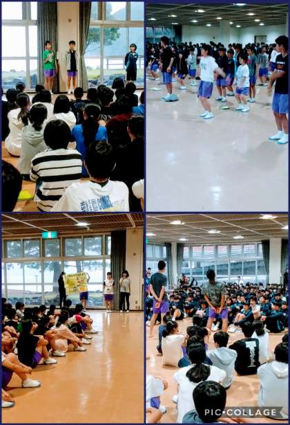 2年生 自然教室速報 公開日 2018/05/30 更新日 2018/05/30 2年生 朝の集いの様子です。 小雨が降り始めたため、室内での活動になりました。 同宿の岐阜県本巣市立真正中学校と、交流を行いました。
