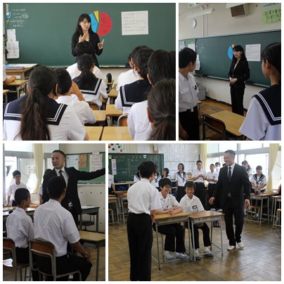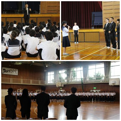 教室で接客マナーを学んだあと、体育館で全体学習を行いました。相手を思い相手のためになにができるのかをイメージして働くことの大切さを教えていただきました。