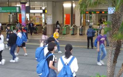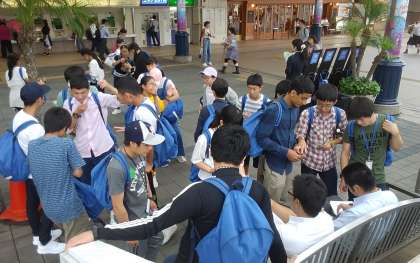 舞浜駅に到着する班が出始めました。パスポートとミールクーポンを受け取って、いよいよ入園です。