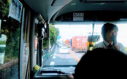 バスに乗車し、学級ごとに設定した目的地に向かいます。