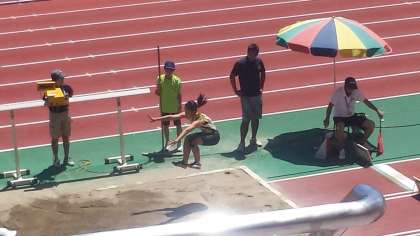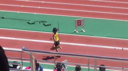 昨日瑞穂陸上競技場で行われた陸上競技県大会予選に、走り幅跳びで出場した3年生の柴田さんが、5m45cmの全国大会標準記録を突破する5m55cmという素晴らしい記録をマークし、全国大会出場を決めました。