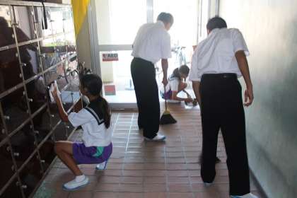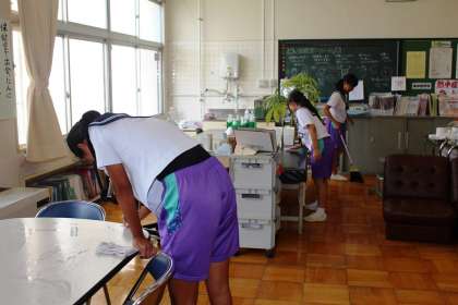 全校出校日です。 体育館での朝礼の後、校内を丁寧に掃除しました。