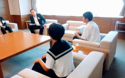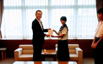 表敬訪問 (全国中学校陸上競技大会出場の柴田さん) 公開日 2018/08/16 更新日 2018/08/16 南中校長室の窓 明日から岡山市で開かれる全国中学校体育大会に、陸上競技走り幅跳びで参加する3年生の柴田さんが、市役所を訪れ、久保田市長への表敬訪問を行いました。 これまでの成果や大会への抱負をにこやかに語る柴田さんの様子に、たくましさと秘めたる闘志を感じました。活躍を心から祈っています。 柴田さんが出場する陸上競技は、19日に行われます。